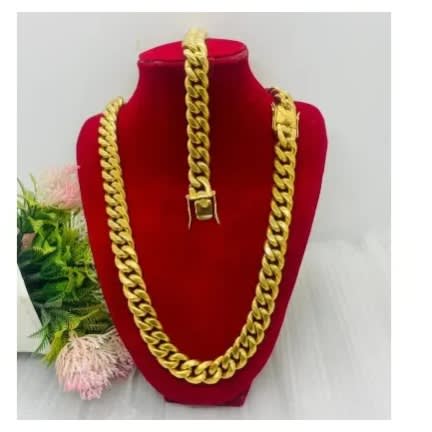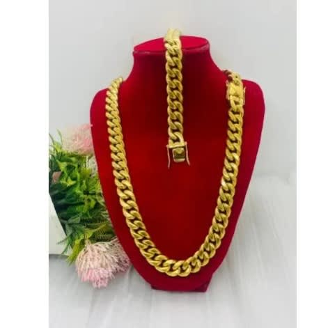 Buy Iced Cuban Gold Link Chain With Gold Bracelet - 14mm in Nigeria
