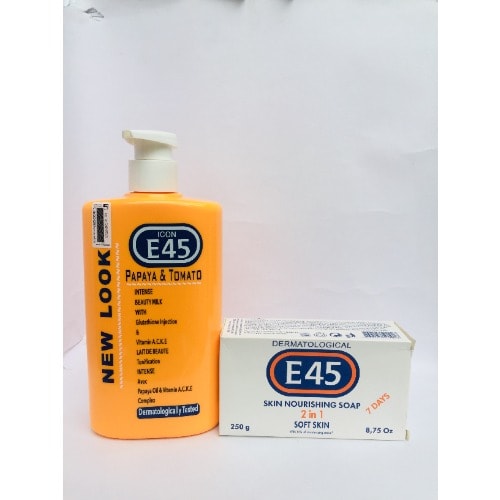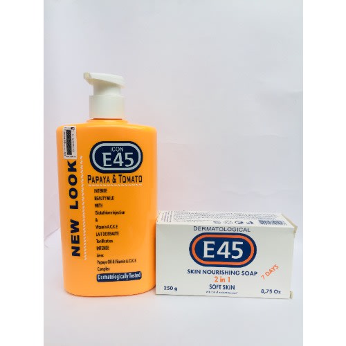 Buy Icon E45 - Papaya & Tomato Intense Beauty Milk - 500ml And Skin Nourishing Soap - 250g in Nigeria