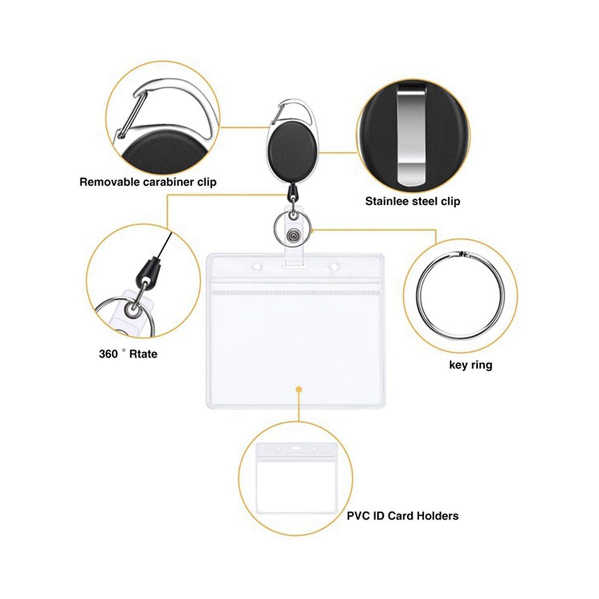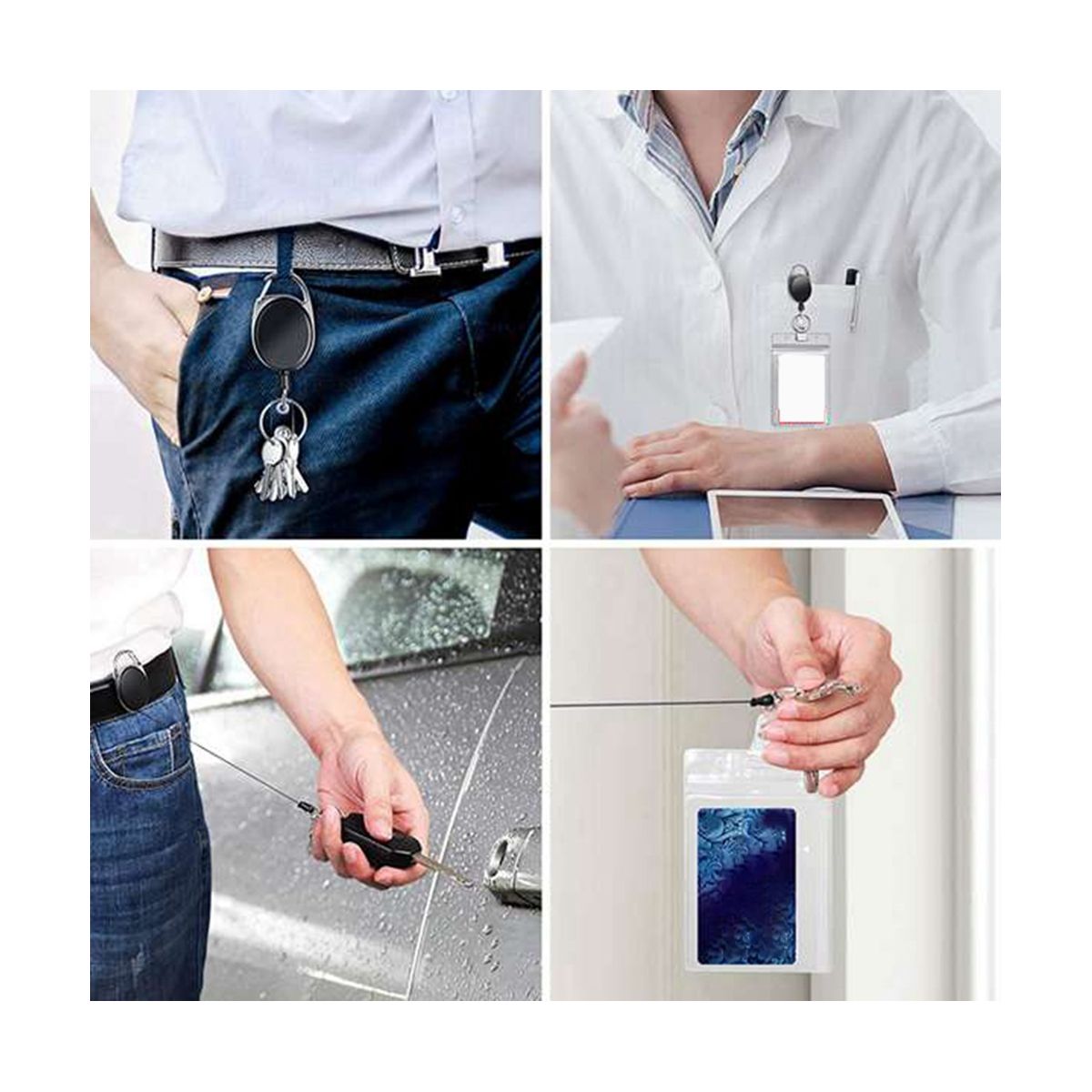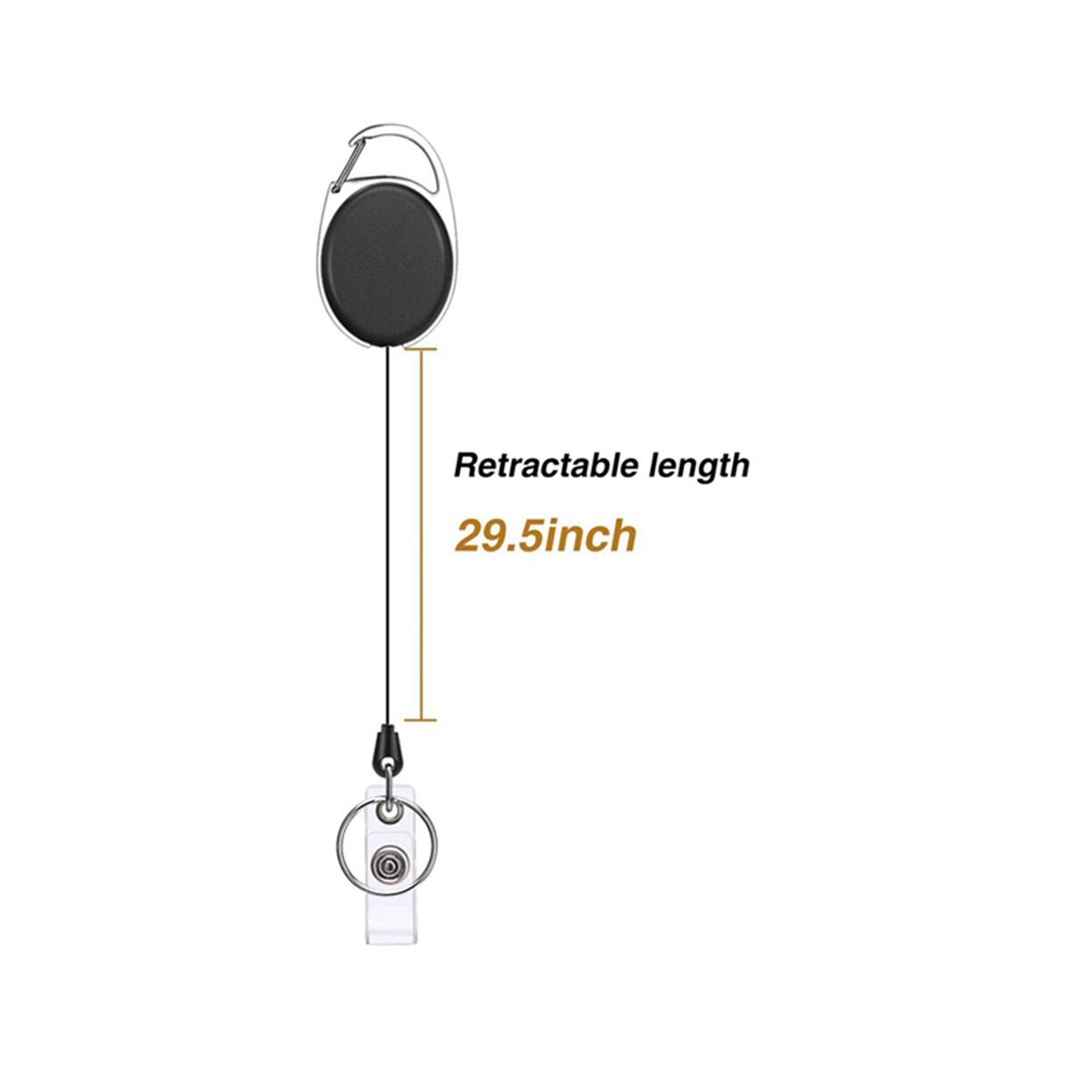 The key extender retractable can be connected to the belt ring or clamped on the belt of trousers, which is much faster than taking out the badge or lanyard from the pocket, and can also be easily connected / removed as needed. Colour:black+transparent