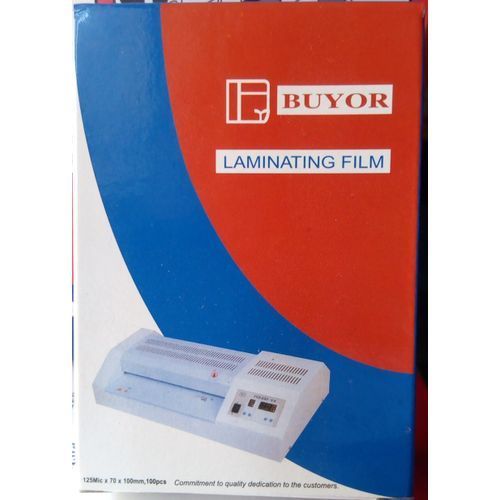 The Buyor Laminating film is the perfect material for you to use to protect porous materials, such as documents, from fading, fingerprints, smudging, and moisture; like droplets that may contaminate its surface. Buyor Laminating film is compatible with all laminating machines with a temperature of 100 0C. Buyor laminating film 70x100mm dimension is a cut-to-size, trimmed to requirements for id card protection and it is totally water resistant. Characteristics of this product include, plastic film, anti-moisture, waterproof, anti-fading, anti-painting, easy to save for a long time, transparent etc. Use this to protect porous surfaces of id cards from droplets and more. This lamination film is suitable for ID Cards protection with its durable lamination features. It is very affordable and cost-effective. One stop shopping for all your id protection needs. Easy to protect any documents, artwork, charts and photography especially of the size namely above.