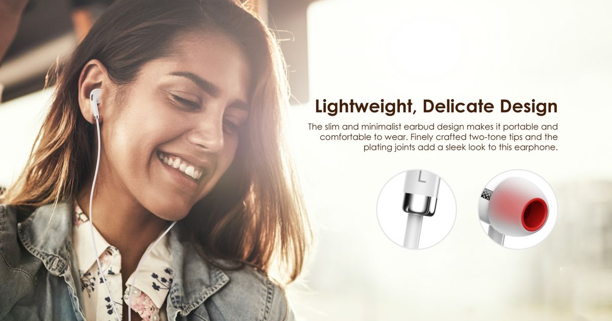 Lightweight, Delicate DesignThe slim and minimalist earbud design makes it portable and comfortable to wear. Finely crafted two-tone tips and the plating joints add a sleek look to the earphone