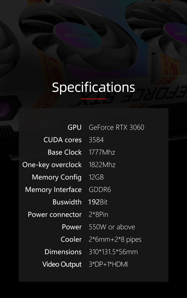 Buy IGame GeForce RTX 3060 Ultra W Graphic Card 12GB GDDR6 Gaming Video Card RGB Computer GPU Support One-Key OC LHR in Nigeria