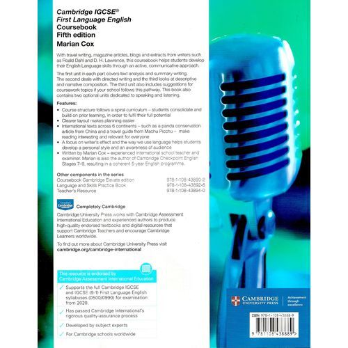 Fully updated, flexible resources taking an active-learning approach that encourages students to aim higher in the 0500, 0524 and 0990 syllabuses. With travel writing, magazine articles, blogs and extracts from writers such as Roald Dahl and D. H. Lawrence, this coursebook helps students develop their English Language skills through an active, communicative approach. The first unit in each part covers text analysis, summary writing and note-taking. The second deals with directed writing and the third looks at descriptive and narrative composition and includes suggestions for coursework topics if your school follows this pathway. Suggested answers to coursebook questions are included in the teacher's book.