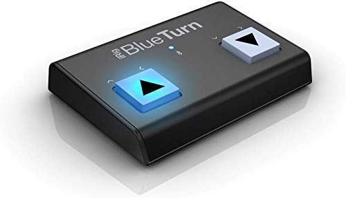 Details: Now using an iPhone iPad Ma or Android on stage for set lists and sheet musi just got a lot easier rig Blue Turn is a Bluetooth page turner with baklit pads that easily lets you turn pages and sroll through material hands-free. If youd like to streamline the page turning proess for your sheet musi lyris slides tabs and other doents rig Blue Turn is the answer. rig Blue Turn is a ompat Bluetooth page turning solution for iPhone/iPad Ma and Android that lets you use your feet to set your hands free while performing. It omes with two highly visible baklit soft-touh buttons that you an trigger with your feet to turn pages leaf through lyris sroll slides and more in your favorite apps and software.