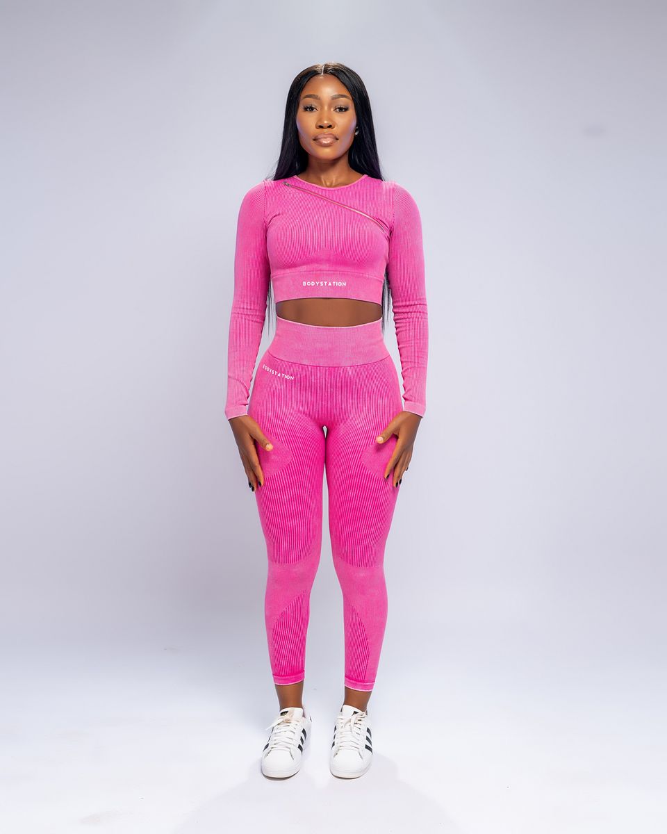 If you're planning to go for an outdoor run or a session in the gym, our Imani Set with the aesthetic cross-body zipper will be your new go-to fit. It's designed to keep you dry and the ribbed, yet stretchy fabric lets you squat and bend in confidence. Benefits