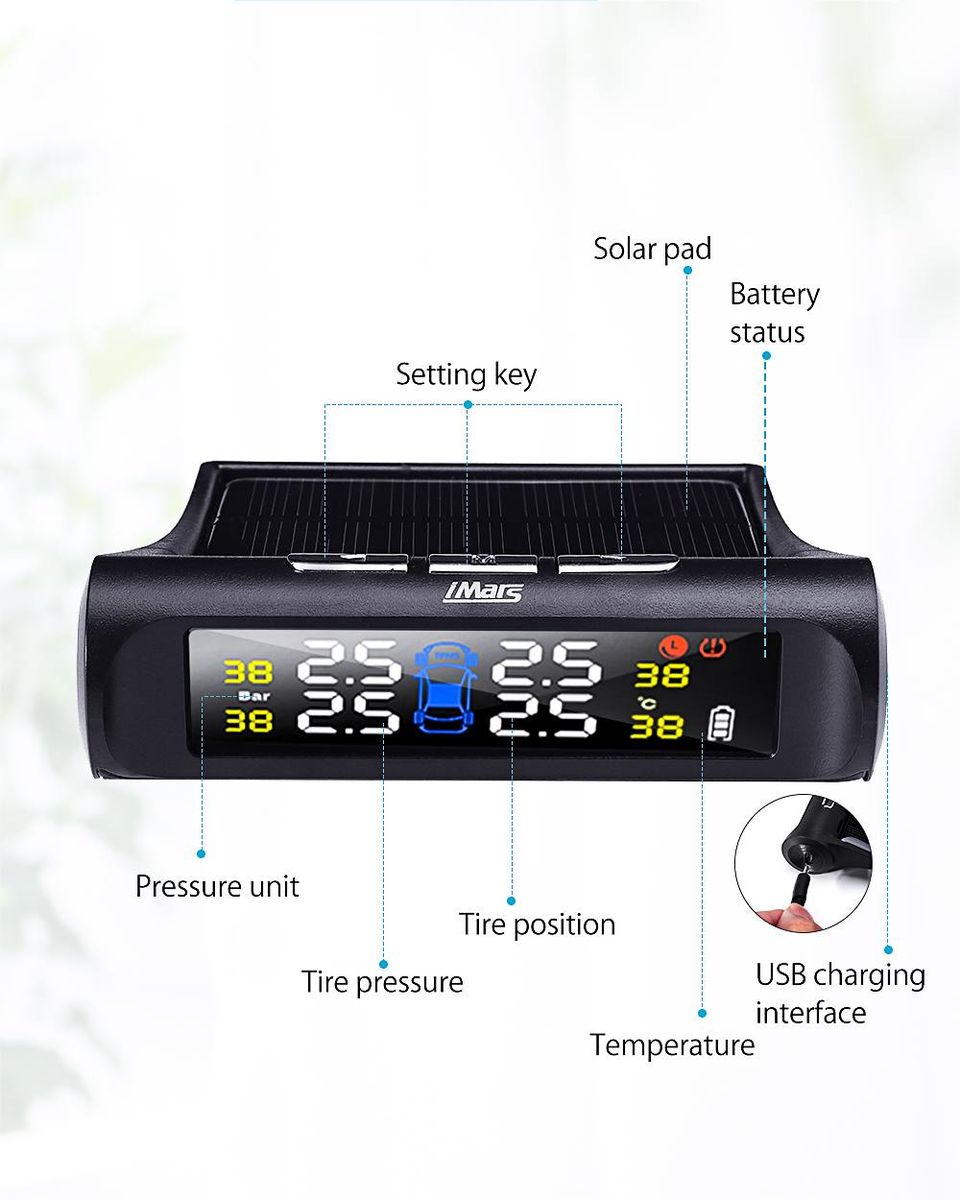 1 * Imars 5v Car Solar Wireless Tpms Tyre Tire Pressure Monitor