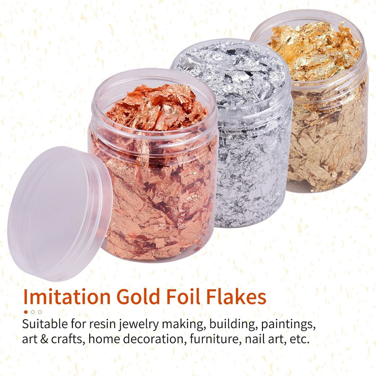 Imitation gold foil flakes can produce amazing shiny texture effect, make your furniture and handicrafts look absolutely special.
