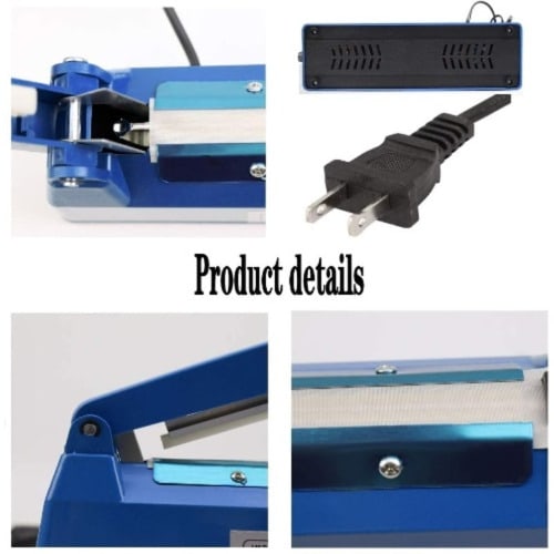 Energy Conservation Impulse Sealer , Non-Toxic, Odorless, Durable, Reinforced and Compression could seal more than 10000 bags. The heating element only heats when pressed close and automatically turns off according to the set mode, Portable & Compact with a sealing element of 12 & Prime; (300mm), All-metal durable build quality, Heat and electricity resistant handle with an anti-rust aluminum case. Includes replaceable spare