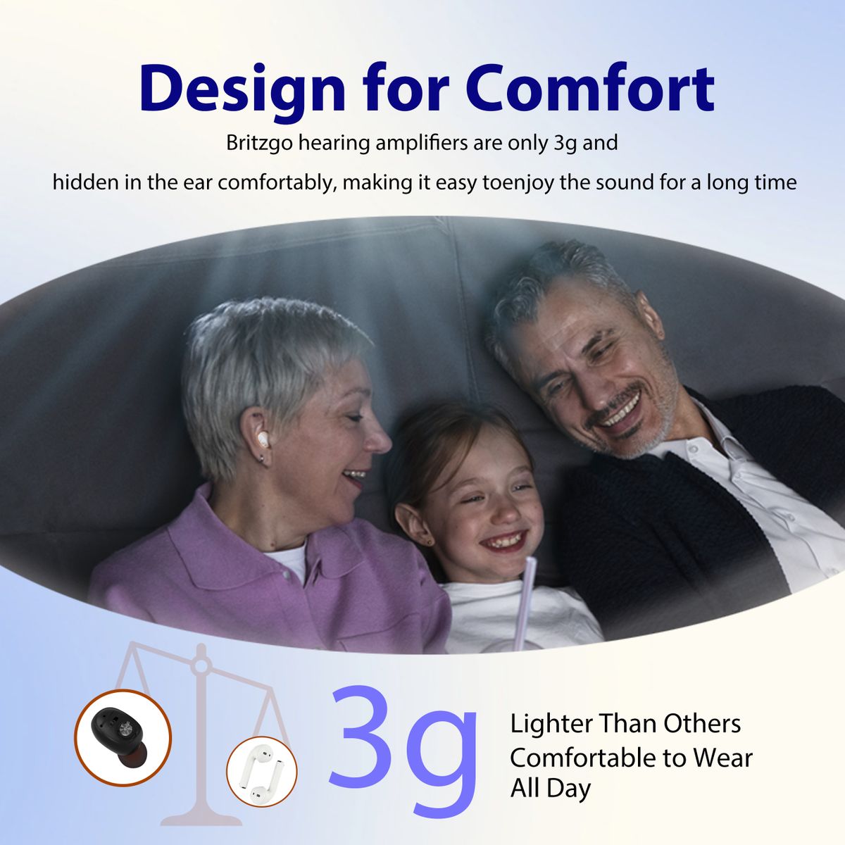 - Sleek design looks like a bluetooth headset to help regain confidence.