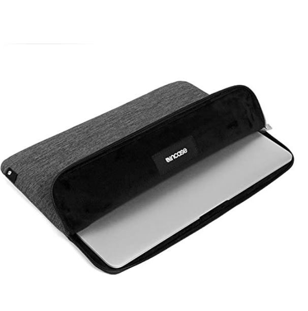 Simple and elegant laptop sleeve from Incase. Features durable Ecoya eco-dyed poly construction with synthetic hair lining to protect from bumps and scratches and keep your device looking newer longer. Custom made to fit 12 "MacBook . The sleeve can be used as a freestanding case or inside a larger bag.