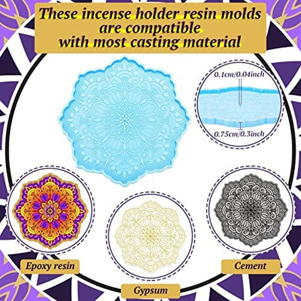 Improve hands on ability: you will receive 2 kind of Mandala Incense Holdermold, the silicone ash catcher measures approx. 15.24 cm/ 6 inches in diameter, and about 0.7 cm/ 0.27 inch in height, appropriate in size and light in weight, adequate quantity can meet your daily use and DIY demands, and you can invite others to DIY together