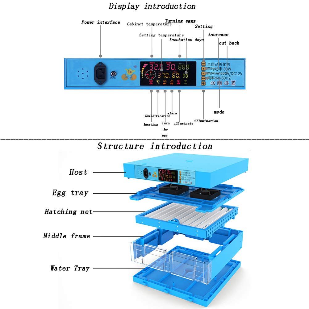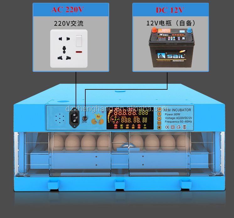 it takes 256 chicken eggsDual power 12V/220V Multiple layers of hatching space and net Features of the incubator: