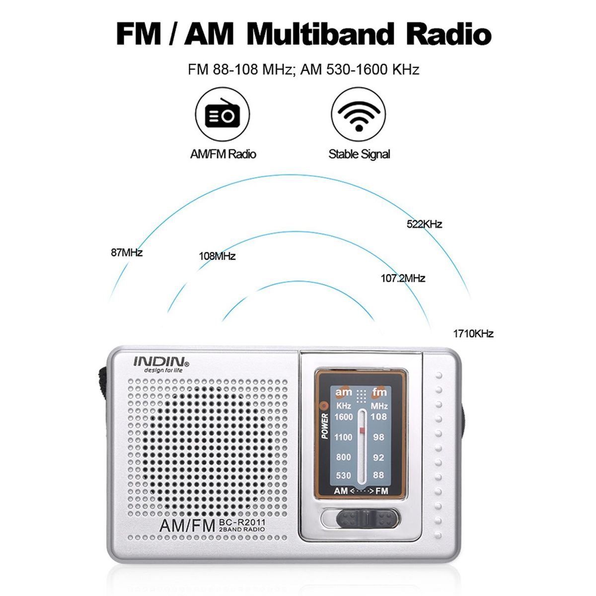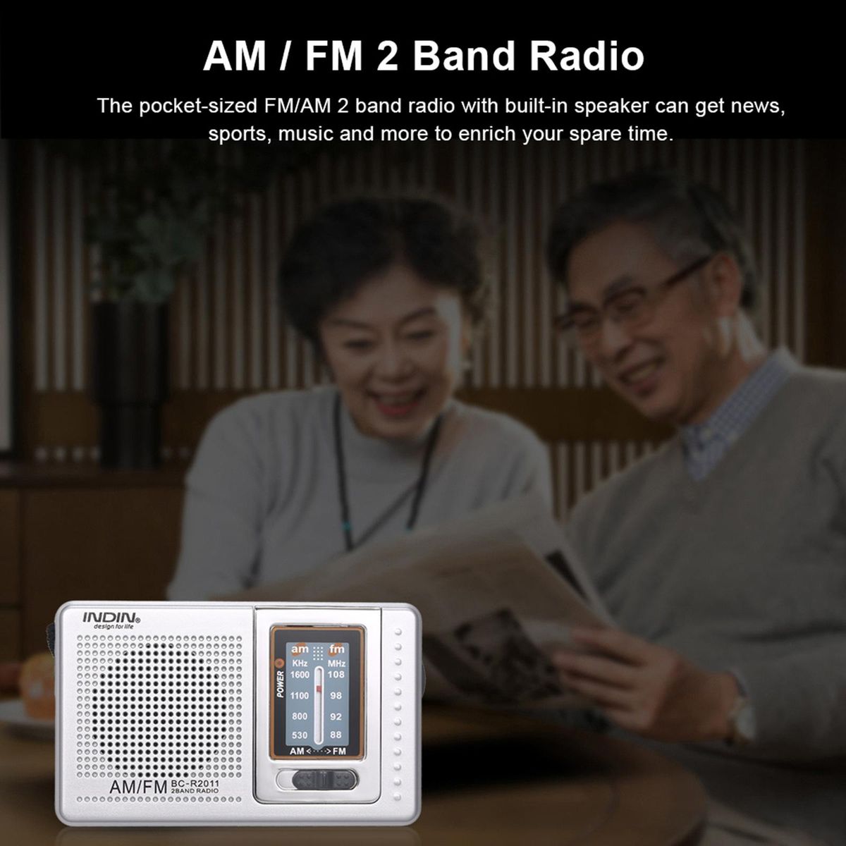 Buy INDIN BC-R2011 Mini AM FM Radio 2 Band Radio Receiver Portable Pocket Radio Built-in Speaker w/ Headphone Jack Telescopic Antenna in Nigeria