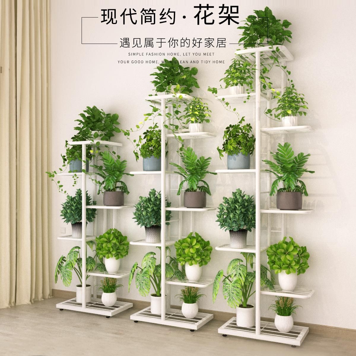 Buy Indoor household 4-layer 5-pot balcony storage wrought iron floor-to-ceiling living room simple flower pot multi-layer hanger green dill flower stand dark gray silver in Nigeria
