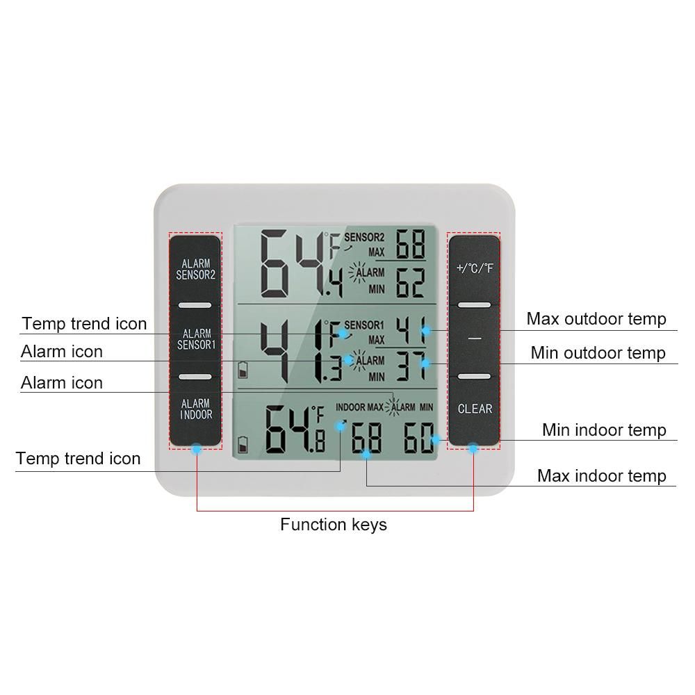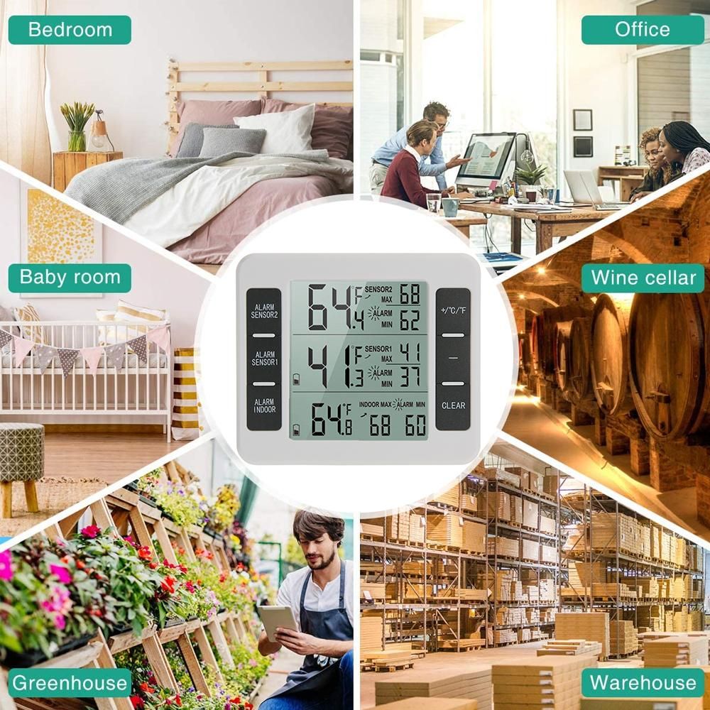 Buy Indoor Outdoor Temperature Meter with Wireless Sensor Digital Temperature Monitor Meter Max & Min Record Large LCD Display for Home Bedroom Office (2 Sensor) in Nigeria