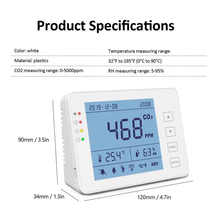 CO2 measuring range: 0-5000ppm