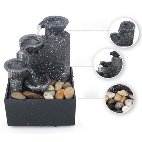 Exquisite miniature fountain: approximately 6.3 inches (16 cm) high, 5.5 inches (14 cm) long, 3.94 inches (10 cm) wide, perfect for decorating any table, desk, bathroom sink. It features three tiers of waterfalls and rocks.