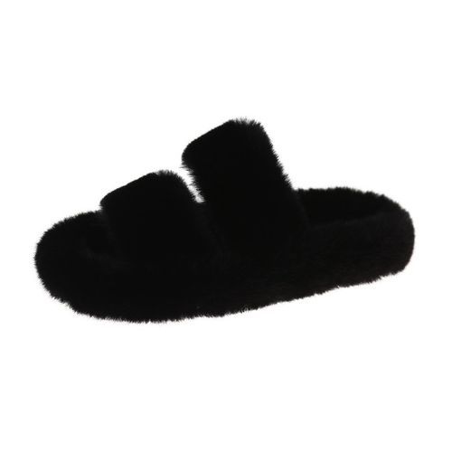 1X Indoor Women Fur Slippers Fluffy Soft Furry Slides Thick Flats Heel Non Slip House Shoes Ladies Luxury Design Footwear Whosale