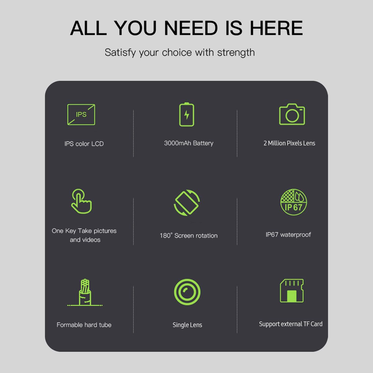 4. IP67 Waterproof: IP67 waterproof camera probe allows you using this inspection camera underwater or in a wet environment.