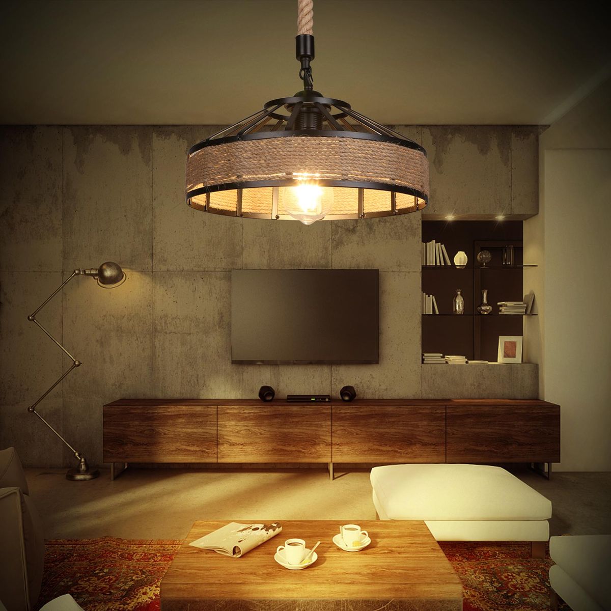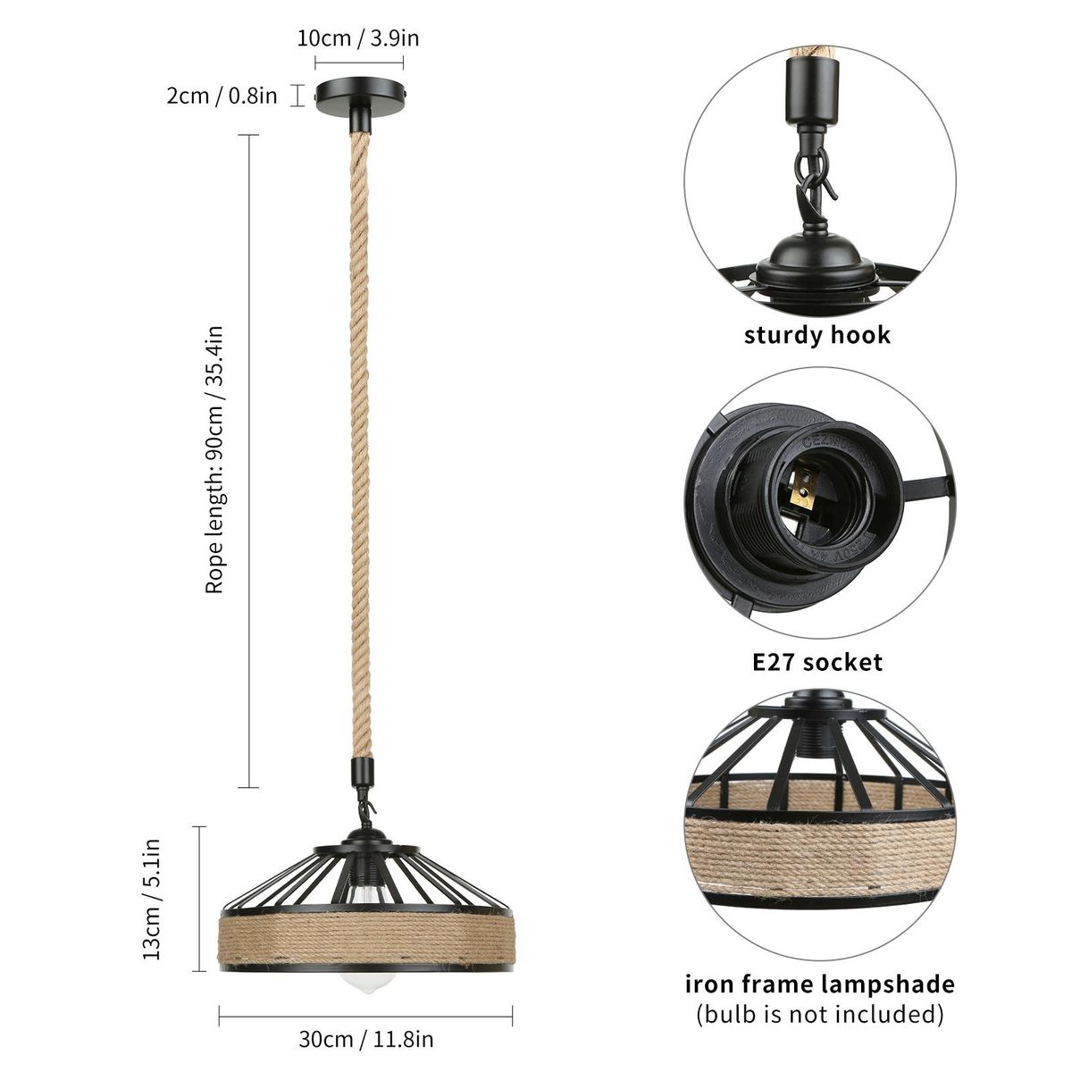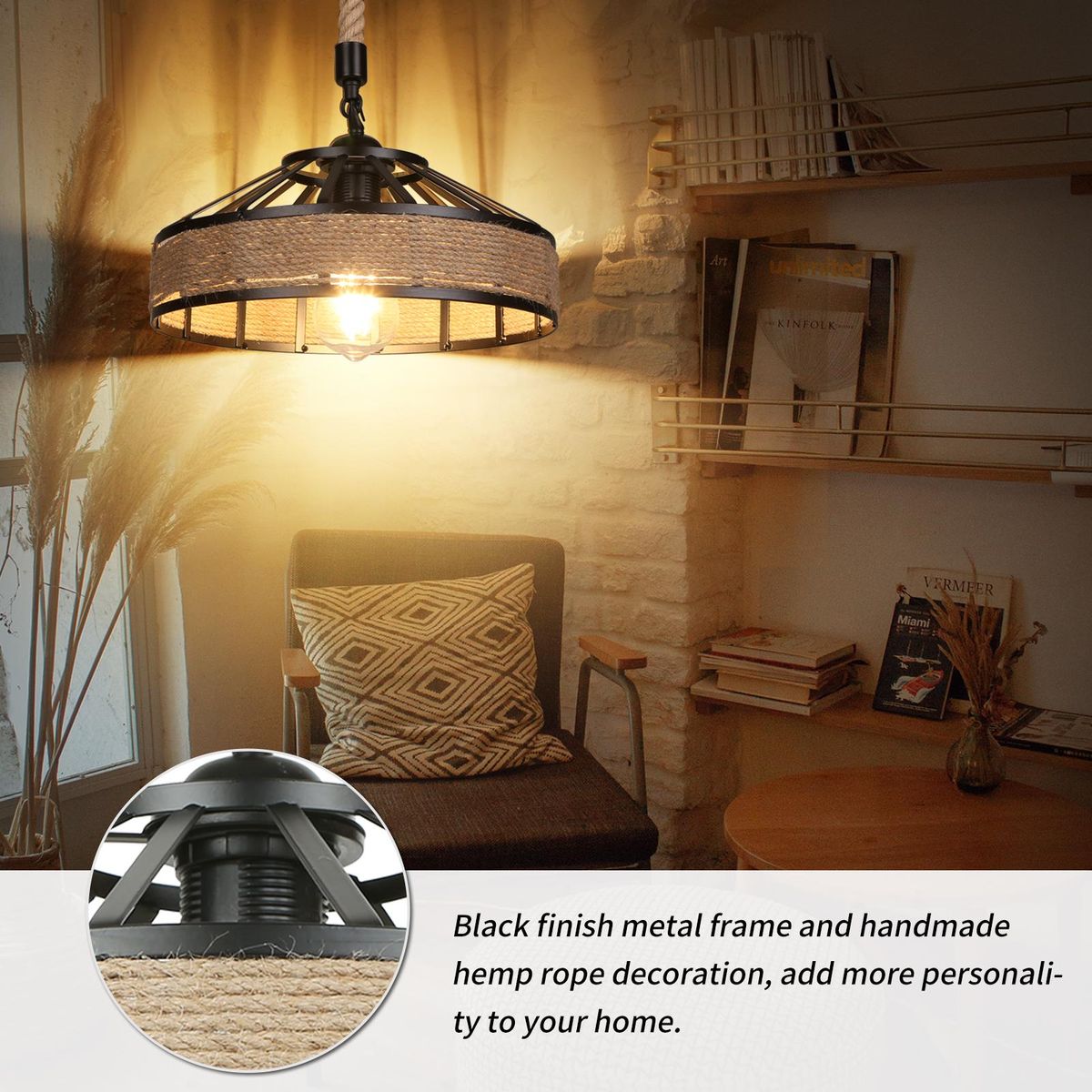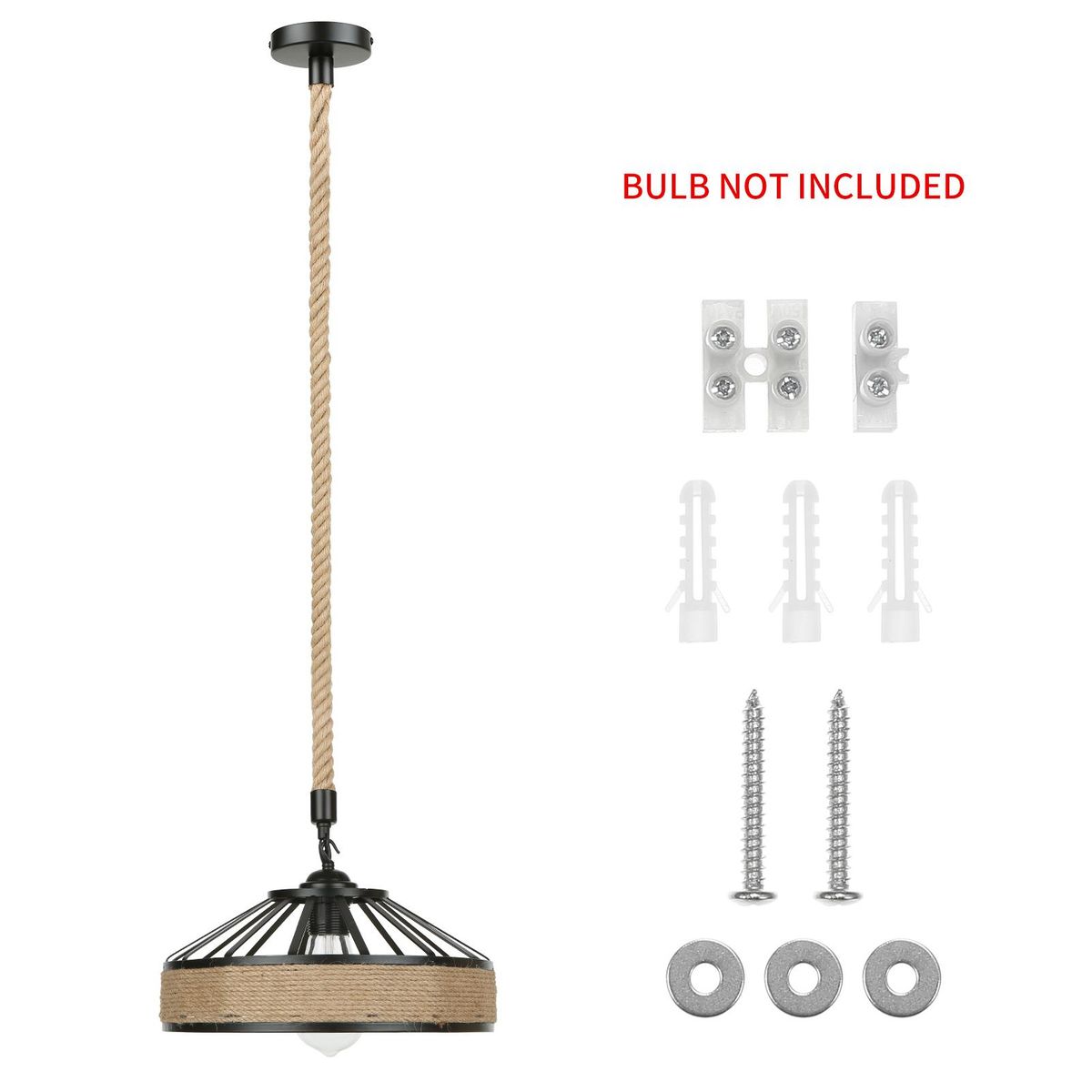 Buy Industrial Hemps Rope Pendants Light Basket Rustic Chandelier Vintage Ceiling Lamp Iron Metal Lampshade Height Adjustable Suspension Light (bulb not included) in Nigeria