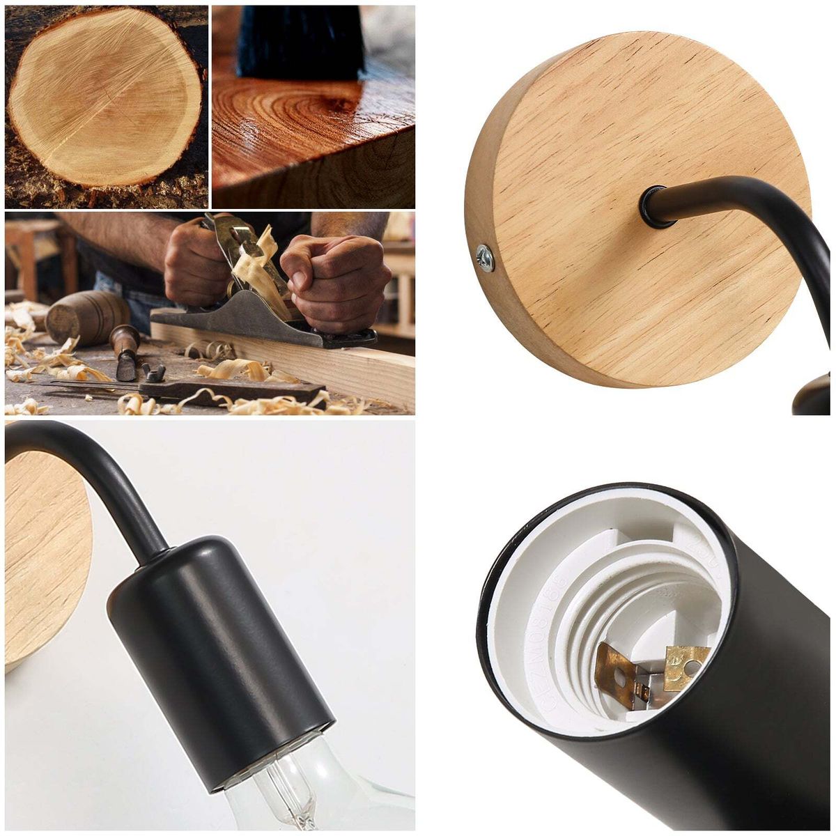 Bblack iron and solid light wood slats give this lamp a retro look.Standard E27 socket. The wooden wall lamp is suitable for E27 bulbs (bulbs not included), it is recommended to use old-fashioned bulbs, which gives off a retro and nostalgic atmosphere.Contains 2 sconces. Packaging dimensions: 17 x 27 x 5.5 cm. Weight: 330gSimple and elegant industrial design. can be used in the living room, bedroom, dining room, kitchen, hallway, etc.Easy to install. Use the included installation accessories, simply connect the wires and secure the bulb to a dry, flat surface to complete the installation. Extremely simple and practical!FeaturesName: retro wall lamp