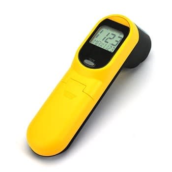 This thermometer features & plusmn; 2 % accuracy and has a fixed emissivity @ 0.95. An 8-point circle defines the test area. It is powered by AAA batteries.