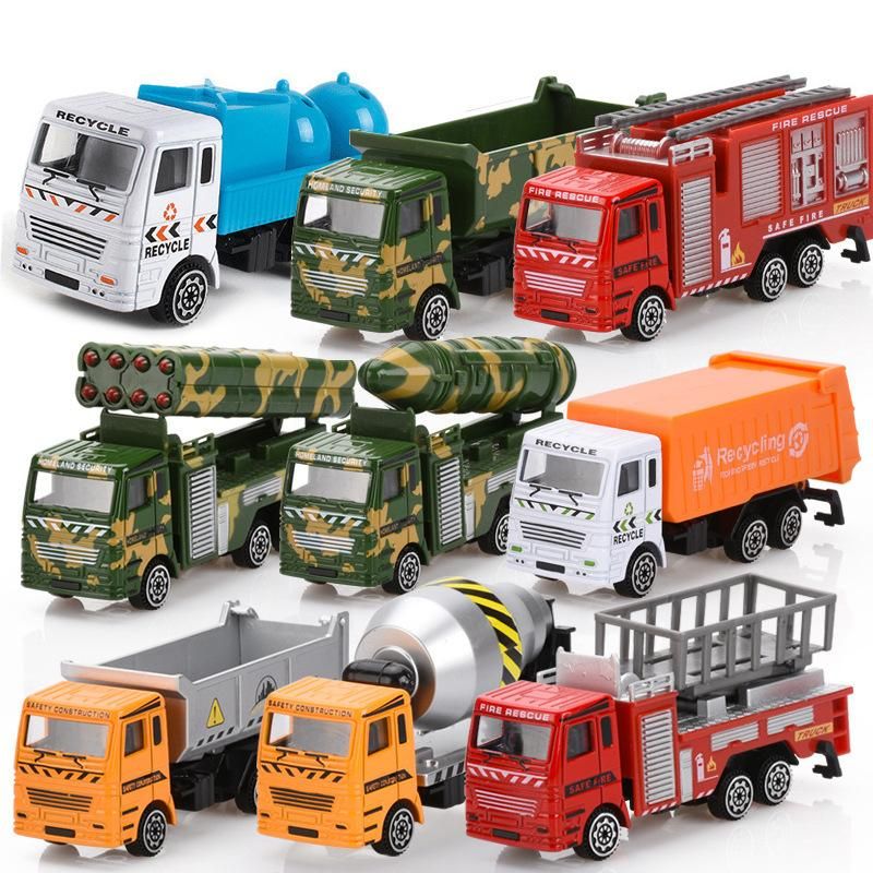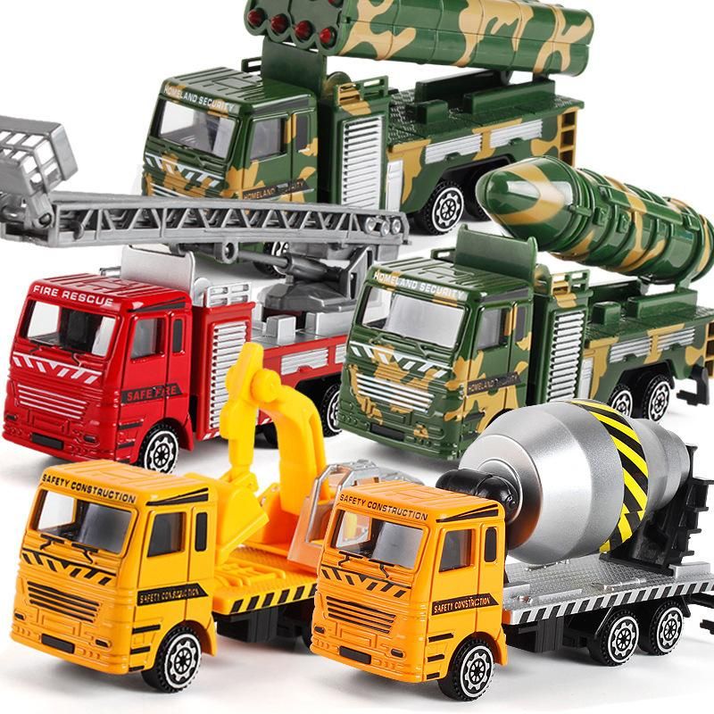 1X Inertia alloy car, fire truck, mixer truck, excavator, excavator, boy, construction vehicle, children's toy, boy, girl, Christma
