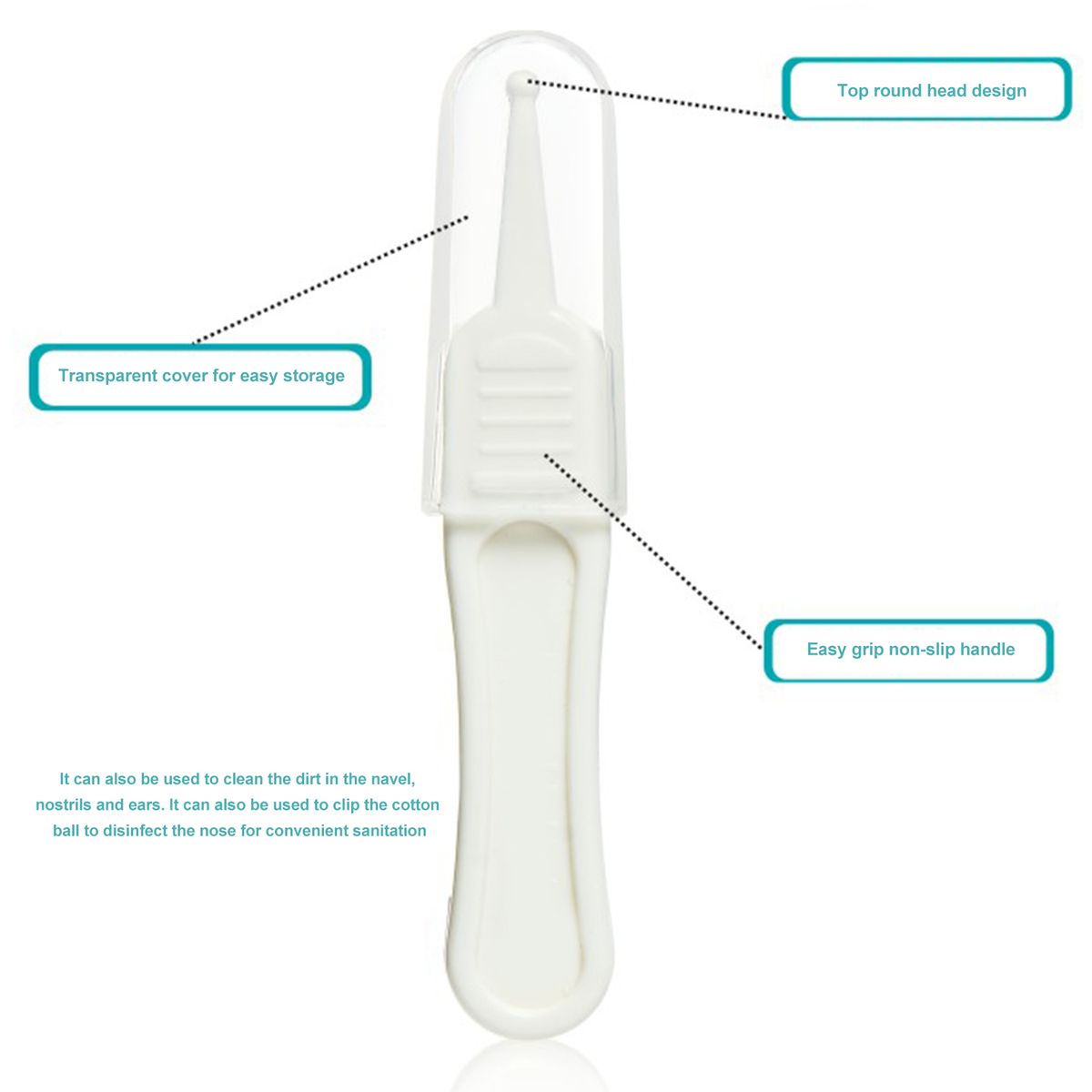 ABS material infant nasal discharge clip, easy to hold grooved handle, antislip, high toughness, top round head design, prevent scratches to the skin inside the nasal cavity, washable, safe and health.