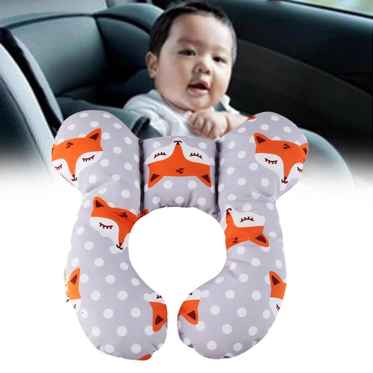 U SHAPE HEAD SUPPORT: Lovely cartoon pattern , car seat pillow provides total head and neck support, soft and comfortable, which can prevent shaking when baby on the or car seat.