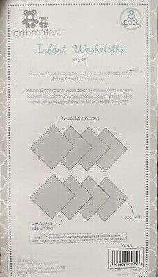 These super soft washcloths from Cribmates are perfect for baby's delicate and sensitive skin. Cribmates 8-pack washcloths Woven poly construction Each measures 9 in x 9 in 100% polyester Machine wash cold