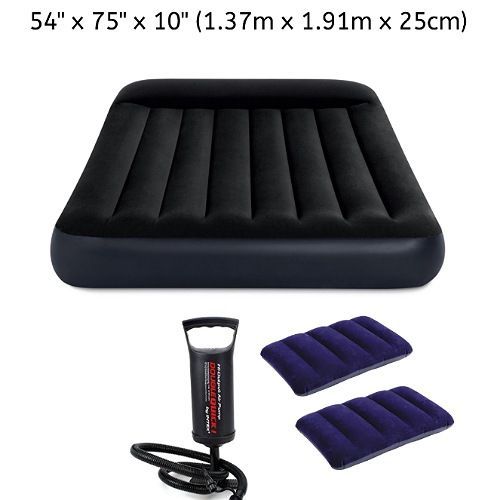 Intex Inflatable 10inch pillow raised Airbed With Pump + Two Pillows -2 person- 54'' x 75'' x 10'' (1.37m x 1.91m x 25cm) (W X L X H)