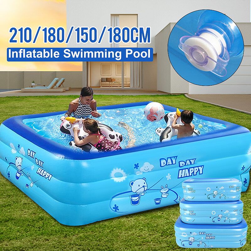 Splash & Play Deluxe Family Pool is great for the whole family to have fun outdoors paddling and splashing about! The family pool features extra wide walls made from durable vinyl which will help prevent water loss when climbing in and out of the pool. The 3 ring sturdy helps add stability to the pool when in use.