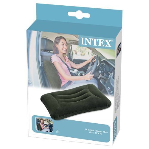 This Intex inflatable lumbar cushion measures 58 x 36 x 13 cm. It has a flocked surface in order to provide greater comfort. The top is designed to provide lumbar support. It is perfect to use when on trips or for driving. It is waterproof.