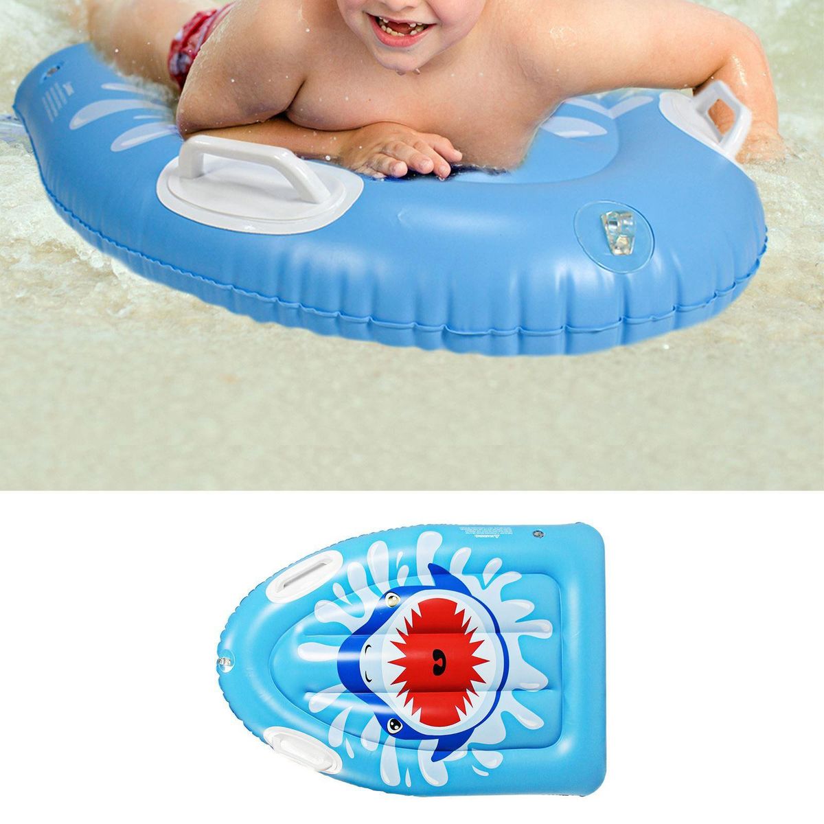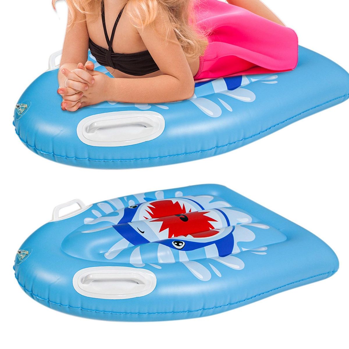 The inflatable surfing board with two handles, suitable for children.