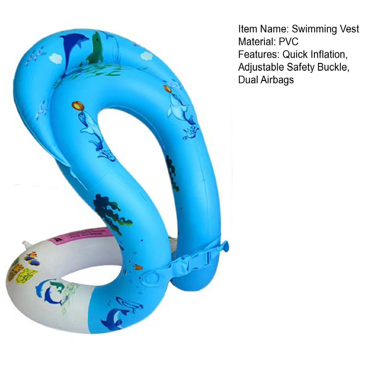 What this swimming vest provide are a comfortable backrest, an adjustable safety buckle, and dual airbags. And the non-slip design can prevent baby from sliding down.