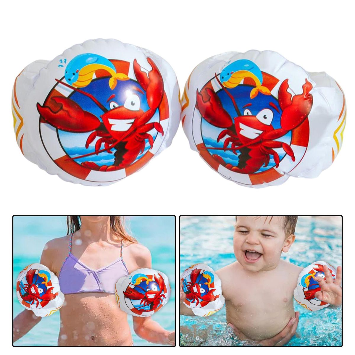 TOP QUALITY: well made from high quality environmentally friendly PVC, durable and odorless, safe for children.PERFECT SUMMER GIFT : custom designed for kids at the age of 3-6 years, the perfect tool to help beginners learn to swim much more easy.CUTE & PRACTICAL : design with cute and lovely patterns, drum type arm bands can nicely adapt to the , great for helping young swimmers build confidence in the water.EASY & CONVENIENT : easy and convenient to inflate and deflate, lightweight and space saving for carrying or storage.INFLATABLE ARMBANDS : package comes with 2 x arm float, providing full flotation support for a child already familiar with the water, building confidence and allowing for the development of beginning swim skills.