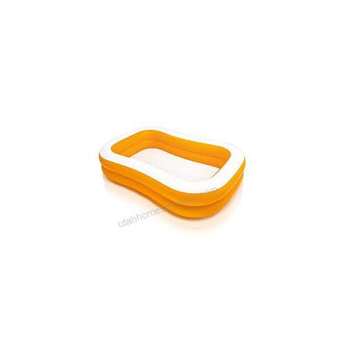 original Intex 57181 Mandarin Swim Center Family Pool Size: 90" x 58" x 18" (229 x 147 x 46 cm) Product Features: • Constructed from durable 13 gauge vinyl • Colorful 2-ring design • Includes a Repair Patch • Free-flow drain Plug • Capacity: 137 gal • Size: 90" x 58" x 18" (229 x 147 x 46 cm)