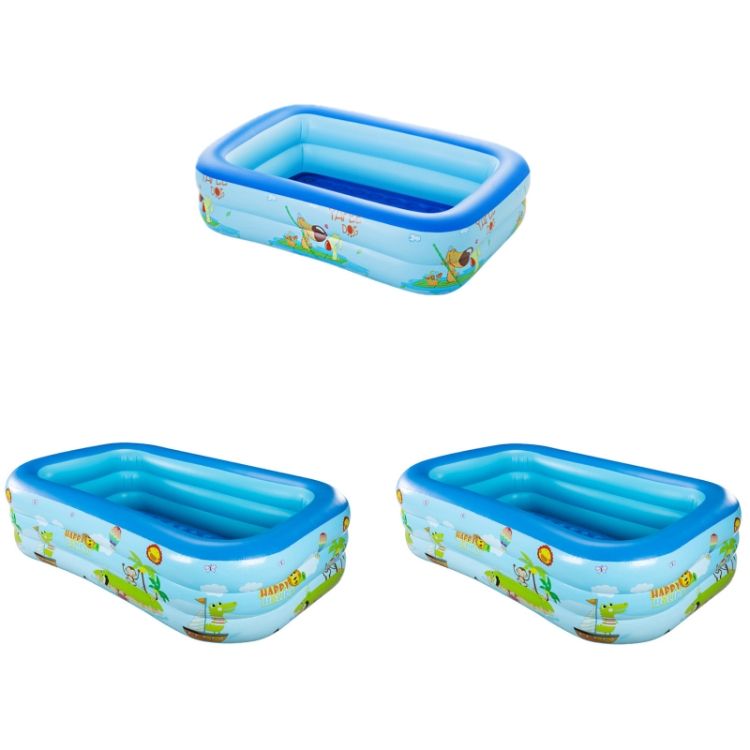 8. Size of inflatable pool: 1.2m second-tier pool 120x90x33cm after inflated; 1.3m three-tier pool 130x90x50cm after inflation; 1.5m three-tier pool 150x110x50cm after inflation