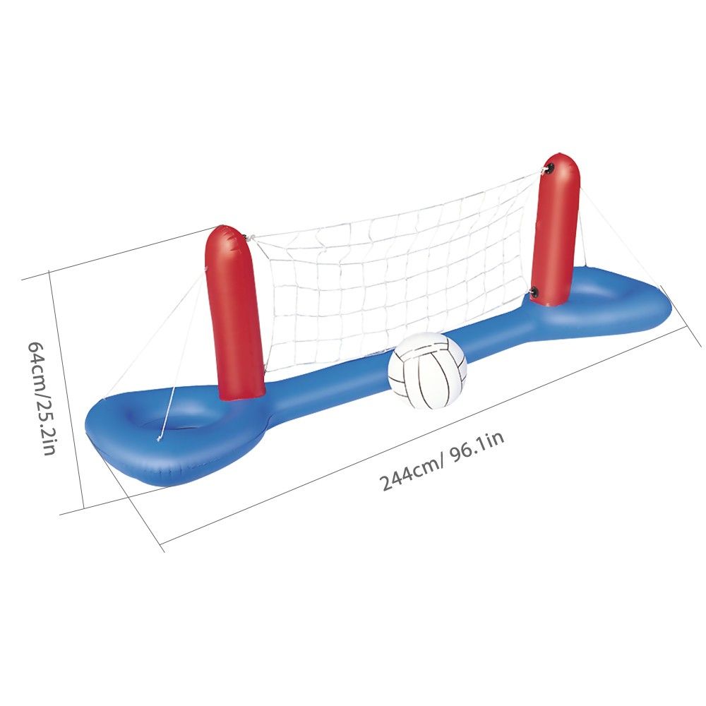 bull; Pack Includes: This inflatable pool float set comprises an Inflatable Volleyball Net, an Volleyball and Includes a weight bag to add weights and anchor the pole bases. The inflatable volleyball Net is measured approximately 96.1 quot; x 25.2 quot; x 25.2 quot;.