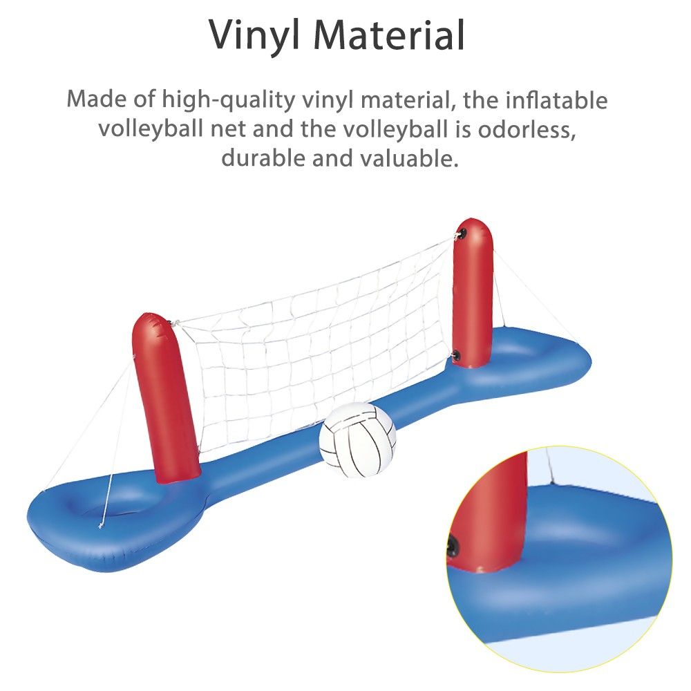 bull; Material: Made of high-quality vinyl material, the inflatable volleyball net and the volleyball is durable and valuable.