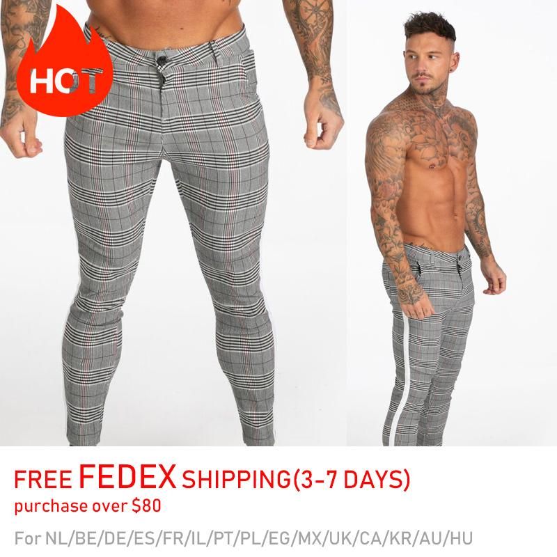 GINGTTO-Pantalones informales para hombre pantalon superelastico ajustado con cintura elastica a cuadros estilo chino