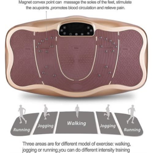 rand New vibration platform.It has Bluetooth, USB, adjustable rope, and a remote control!Vibration machine for the total body. Helps in burning calories and loosing body weight. It also helps in toning your muscles, as well as raising resting and moving metabolic rate. And it has a very low impact on joints.Simply put, do you need an equipment to massage your whole body, burn some fat, reduce some stress, increase muscle relaxation and strength, and improve blood circulation?If the answer is yes, then get this Full Body Massage Vibration Machine.Massage helps to soothe aching muscles, relax the body and relieve tension. Some forms of massage are also believed to provide health benefits such as improving digestion, boosting the immune system, relieving headaches, stimulating circulation and controlling minor depression.