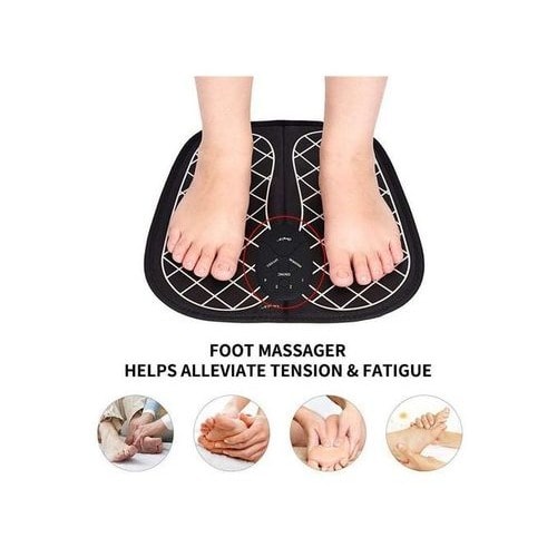 Indulge in a rejuvenating foot massage from the comfort of your own home with our EMS Foot Massager. Using advanced electrical muscle stimulation technology, this device targets your feet's acupressure points, promoting circulation and easing muscle tension. With multiple massage modes and intensity levels, you can customize your massage to suit your needs. It uses a low-frequency pulse to wind down feet and calves, effectively reduces fatigue, relieves vein varicose, improves blood circulation, and soothes muscle numbness and pain. Its compact and portable design makes it easy to use anytime, anywhere. Say goodbye to tired, achy feet and experience the benefits of a professional-quality foot massage with our EMS Foot Massager. Key SpecificationsProduct material: ABS (Acrylonitrile butadiene styrene)Product dimension: 33"L x 16" W x 3"H Battery capacity: 180 mAHBattery type: 2 x AAA batteries (Not Included)Other items included in the package: 1 x Foot Massage Pad, 1 x Host, 1 x USB Cable, 1 x Manual Features at Glance9 intensities 6 massage modesFoldable and lightweight design, All round-fit for the foot