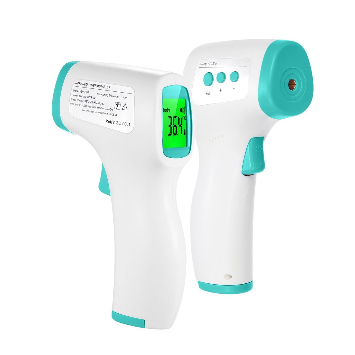 Precise infrared thermometer, non contact and convenient to use. One-button measure, backlit LCD with tri-colored light, 32 data storage. Developed for accurate, safe and fast temperature measurements in the forehead, room and object.