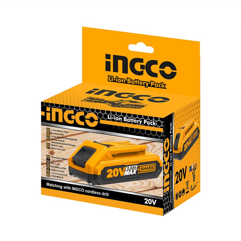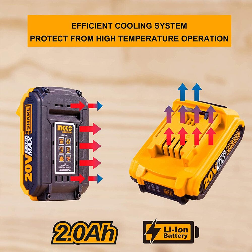 【Advanced Technology】No memory effect, low self-discharge. INGCO 2.0Ah lithium-ion battery pack is always ready to use