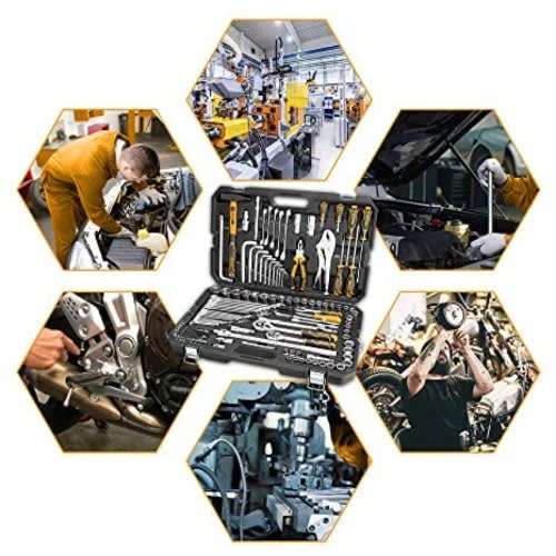 15 pcs 3/8″ 12-Point sockets: 6mm, 7mm, 8mm, 9mm, 10mm, 11mm, 12mm, 13mm, 14mm, 15mm, 17mm, 18mm, 19mm, 21mm, 22mm