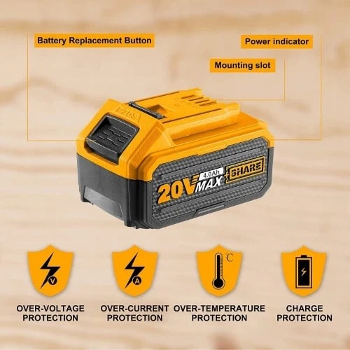 Rotary hammer lithium-ionVoltage: 20VNo-load speed: 0-900 / min.Impact rate: 0-5100bpmIndividual impact force: 1.5J