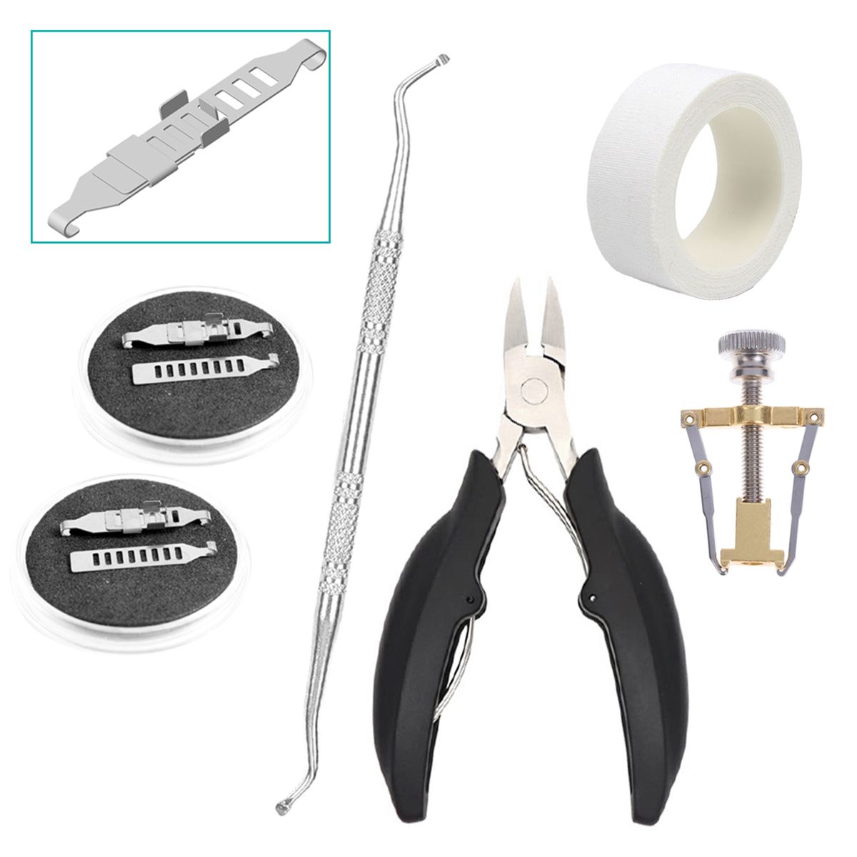 8# 2 * buckle + 1 * plier + 1 * nail remover +1 * corrector + cotton tape