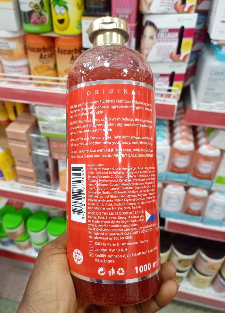 Indulge your skin with Filipino Half Cast Exfoliating Body Wash produced with skincare ingredients that glows, whitens and moisturize the skin.Filipino Half Body scrub wash reduces the appearance of wrinkles and all types of skin pigmentation such as scars, stretch marks, age spots.
