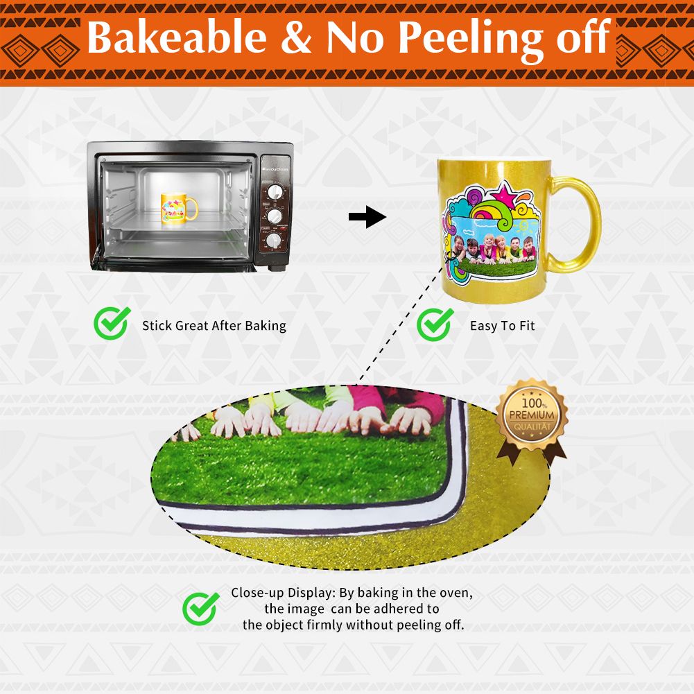 WATERSLIDE TRANSFER PAPER: The PROFESSIONAL BAKEABLE water transfer paper is designed for dark and white ceramics and glasses. The decal paper is super easy to operate and not bunch up during transfer. After baking, the image is vibrant and sticks great to the target object. Acrylic Spray is not included.